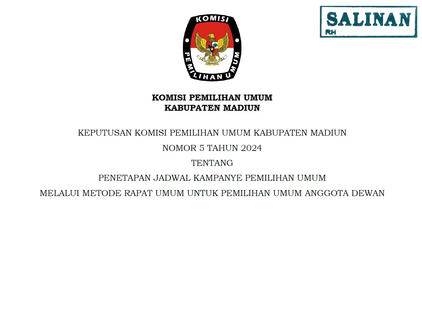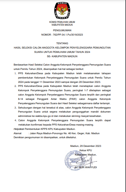 PENDAFTARAN BAKAL CALON ANGGOTA KPU KABUPATEN JOMBANG, KPU KABUPATEN MADIUN, KPU KABUPATEN MAGETAN, KPU KABUPATEN NGAWI, KPU KABUPATEN PACITAN, KPU KABUPATEN PONOROGO, KPU KABUPATEN TRENGGALEK DAN KPU KOTA MADIUN PERIODE 2024 - 2029.